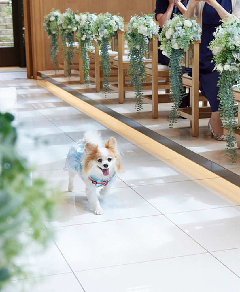 チャペル挙式のリングドッグ入場、