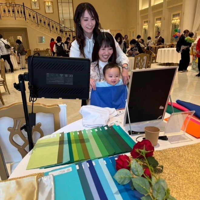 親子でカラー診断をしていただきました。子どもは抱っこでも、ベビーカーに乗ったままでも参加できます。子どもに似合う洋服のブランドも教えてもらったので、今後の服選びの参考にします。