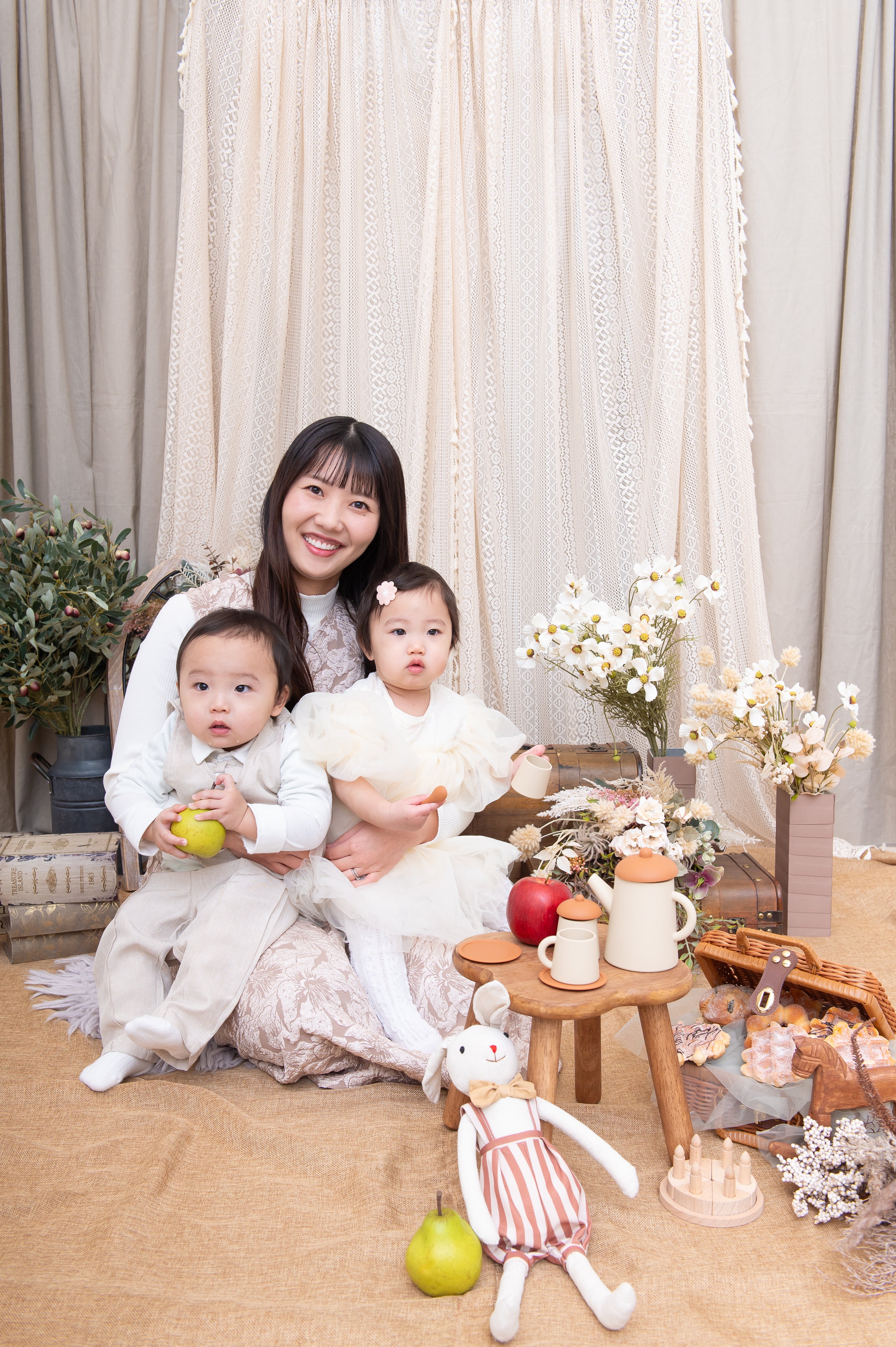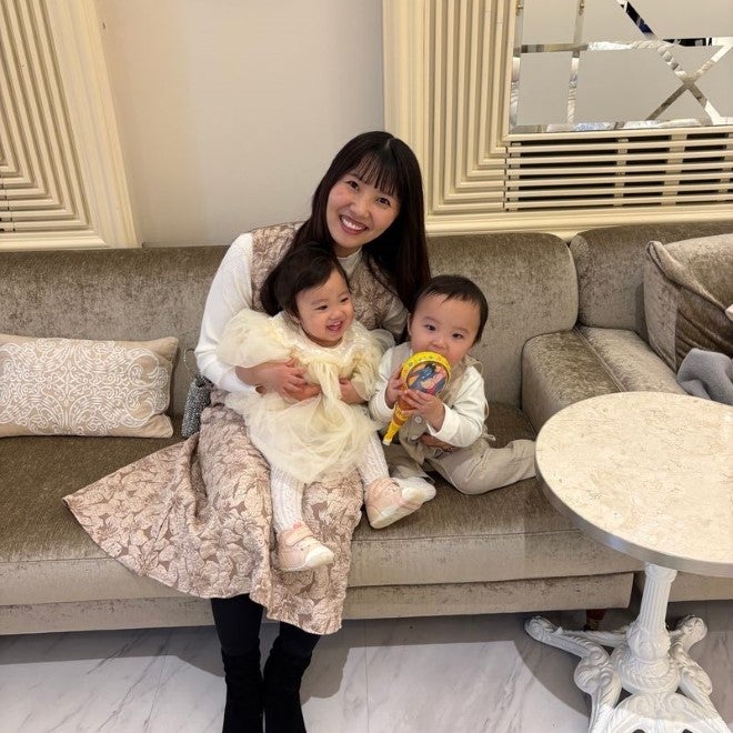 エレガントな大きいソファに座り撮影しました。結婚式ならではのキラキラした会場に子どもたちもニコニコ。普段は子どもだけで撮る写真も、ここではママも一緒に。素敵な思い出になりました。