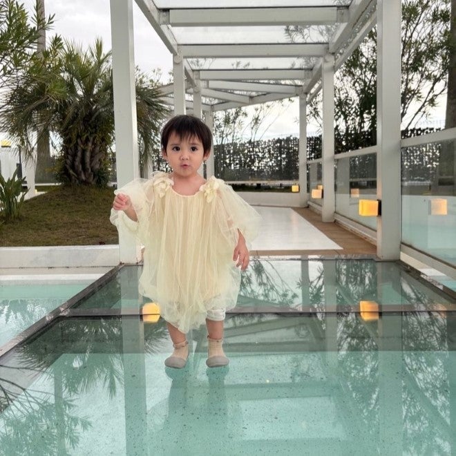 海が近くにあり開放感のある会場の入口には、水の上を渡れる小道がありました。不安そうに私を見てから、ゆっくり歩き出した息子。水の上を歩けたことに、今度は不思議そうな表情をしていました。