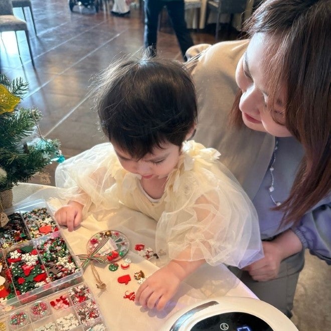 メインのパーツは息子と一緒にチョイス!講師の方にアドバイスをもらいながら2人で制作しました。クリスマスにぴったりのデザインで大満足!家の玄関に飾り「一緒に作れて楽しかったね」とお話ししながら眺めています。