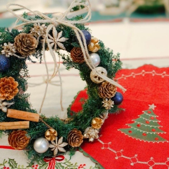 好きな飾りを選んで作るプリザーブドフラワーのクリスマスリース