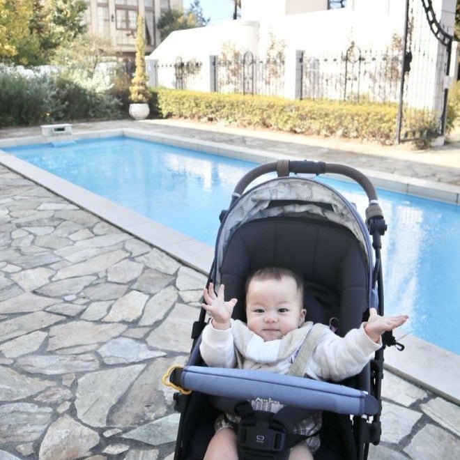 外に出ると目の前には大きなプール!天気が良かったので、そのままお散歩へ。結婚式に招待された際でも、なかなか足を踏み入れないエリアまで見学でき、親子揃って楽しい気持ちになりました。