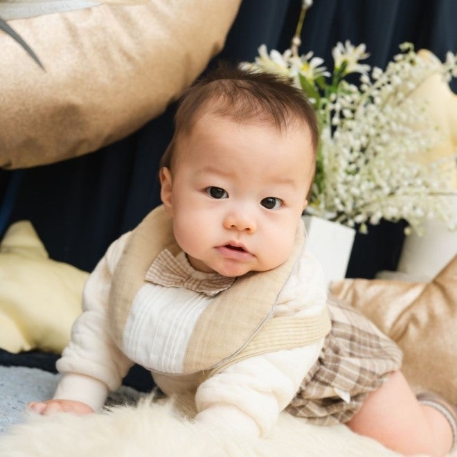 おすわりができるようになったばかりの我が子は、なかなかうまく座れず、前のめりになったり、ハイハイでブースを抜け出したり…。それでも、カメラマンさんがすてきに声をかけてくださり、かわいく撮ってもらえました。