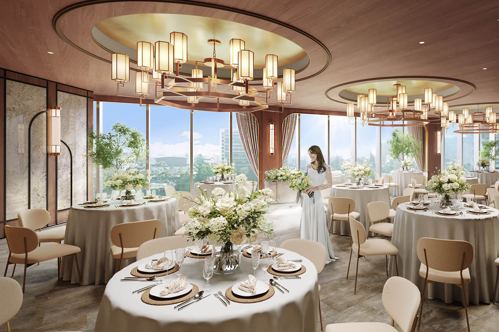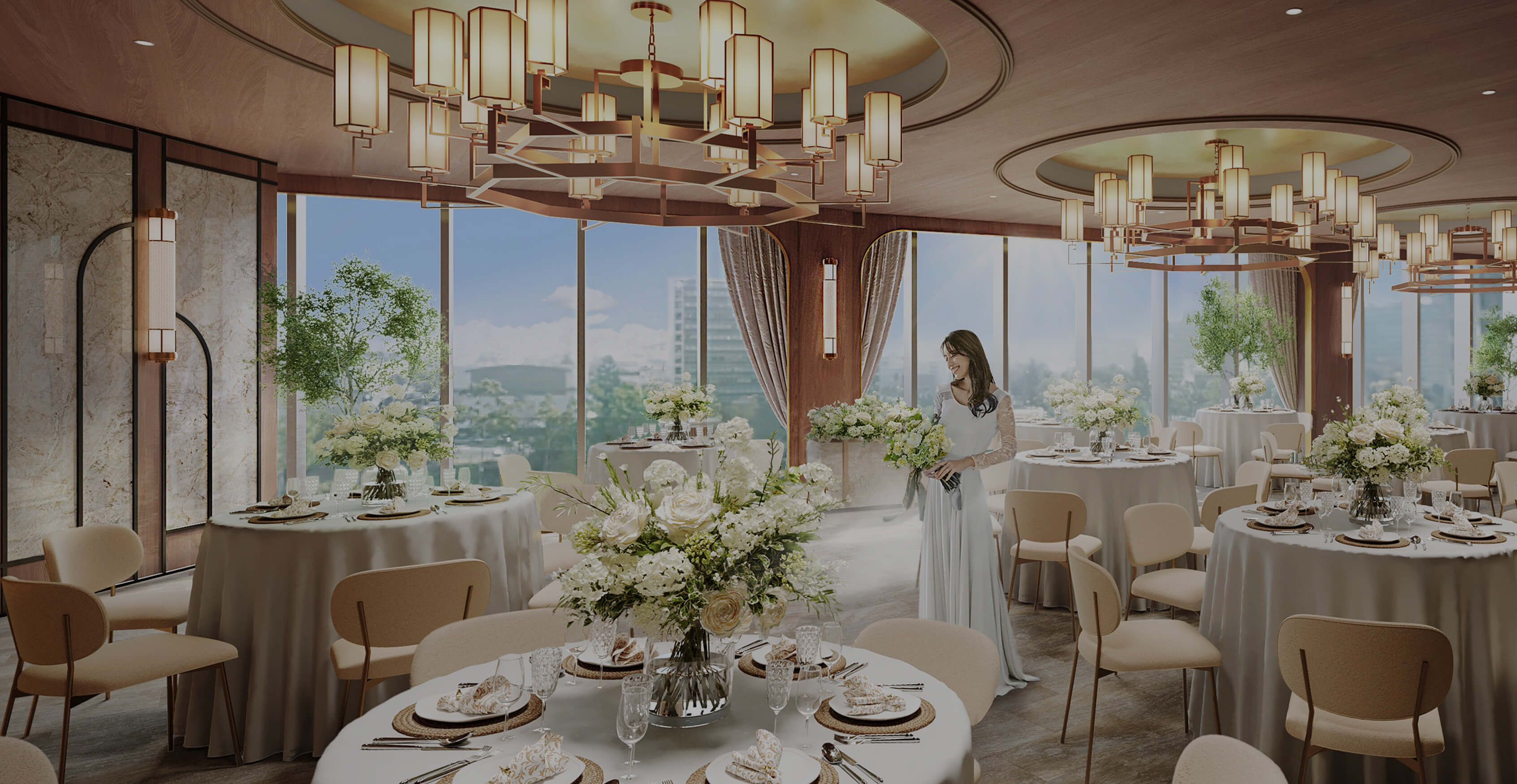 新しい披露宴会場とロビー、テラスガーデンを含む