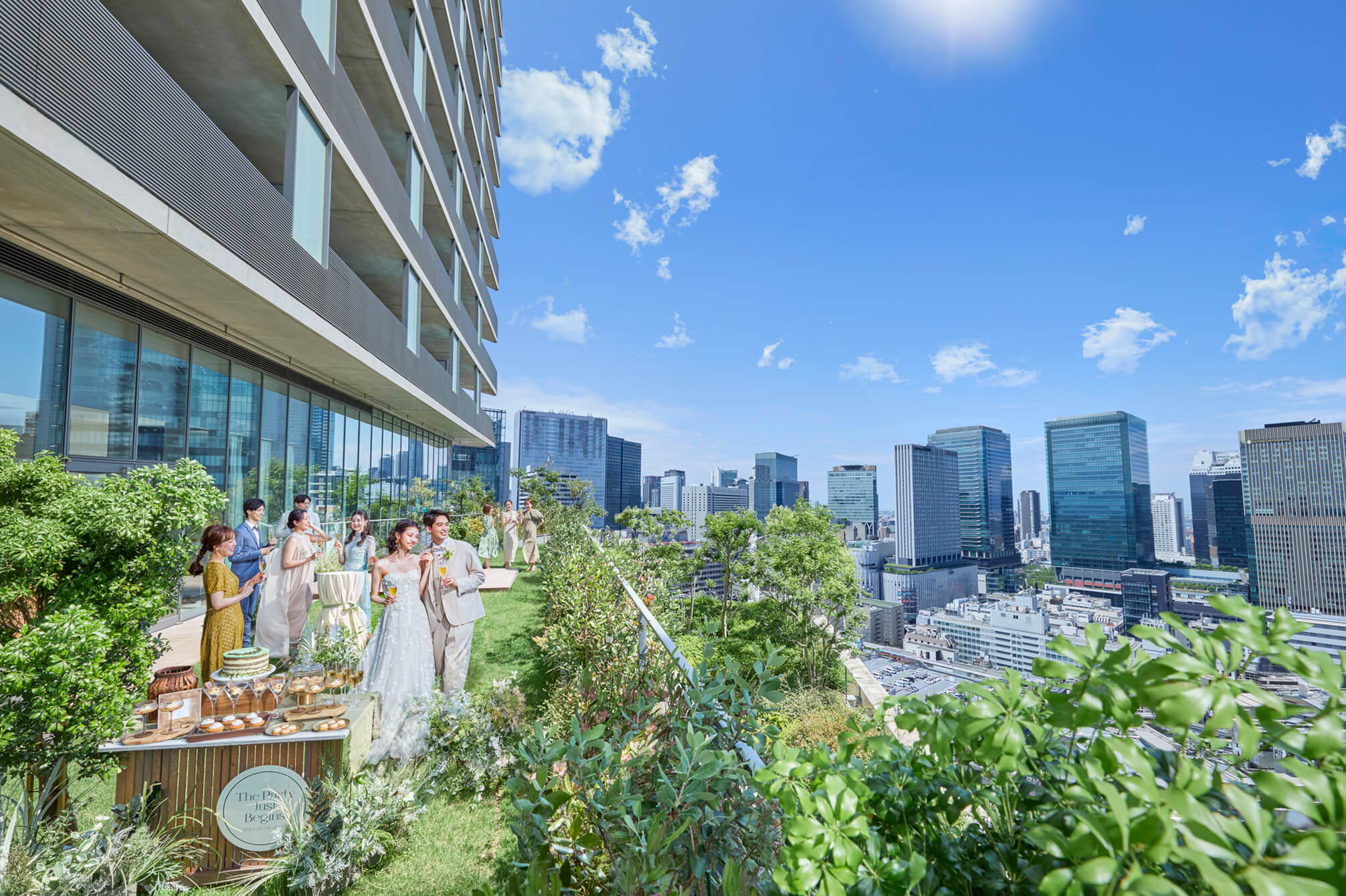 阪急「大阪梅田駅」茶屋町口より徒歩約3分の好アクセスで、チャペル・披露宴会場のシティービューは大阪エリアで唯一無二の当会場の魅力です。リニューアルオープンする11階にはテラスガーデンがあり、ゲストと楽しむデザートブッフェや、フォトロケーションとしても人気です。おふたりだけの特別な時間となるように、結婚式当日はスイートルームのご宿泊をプレゼント。