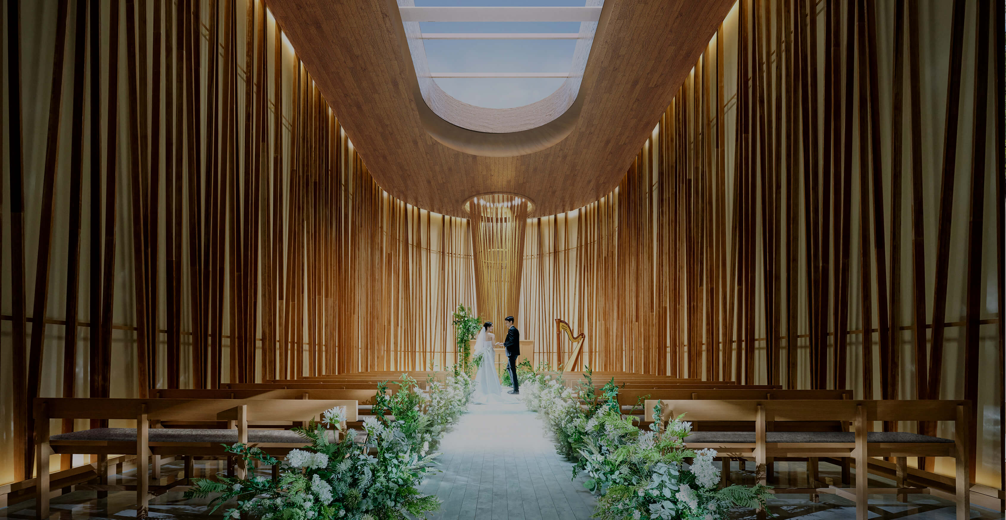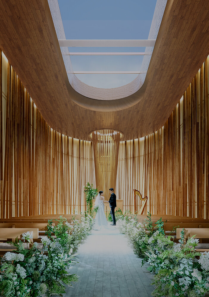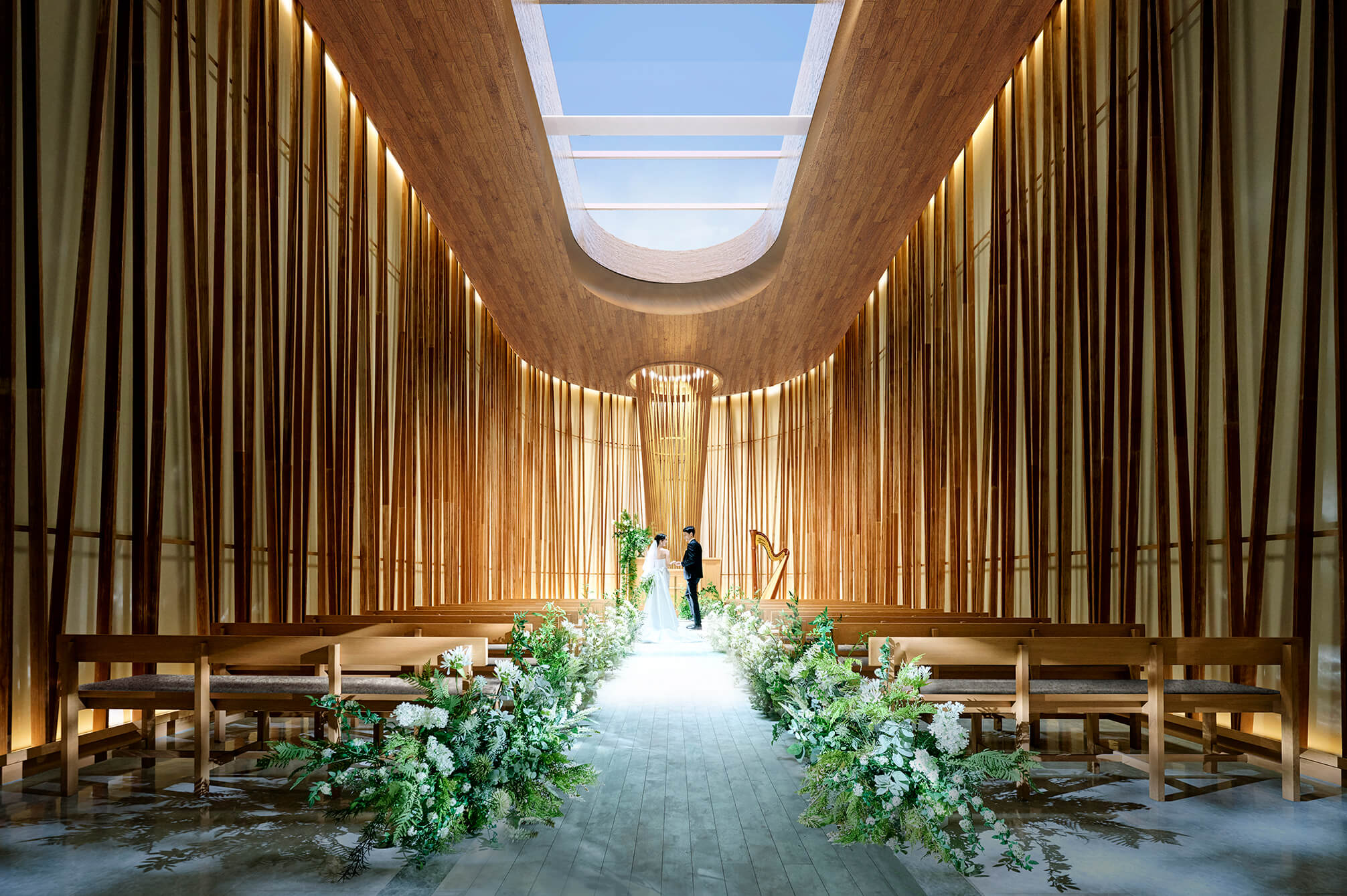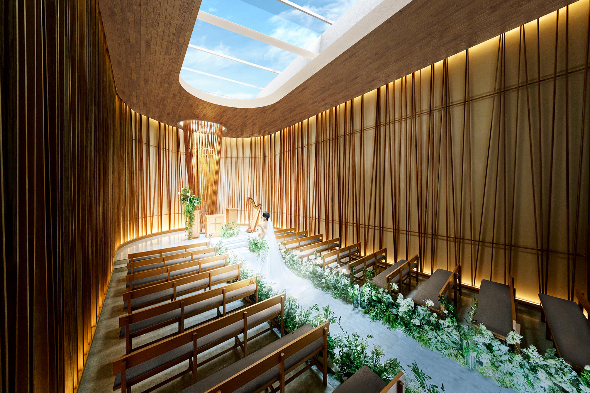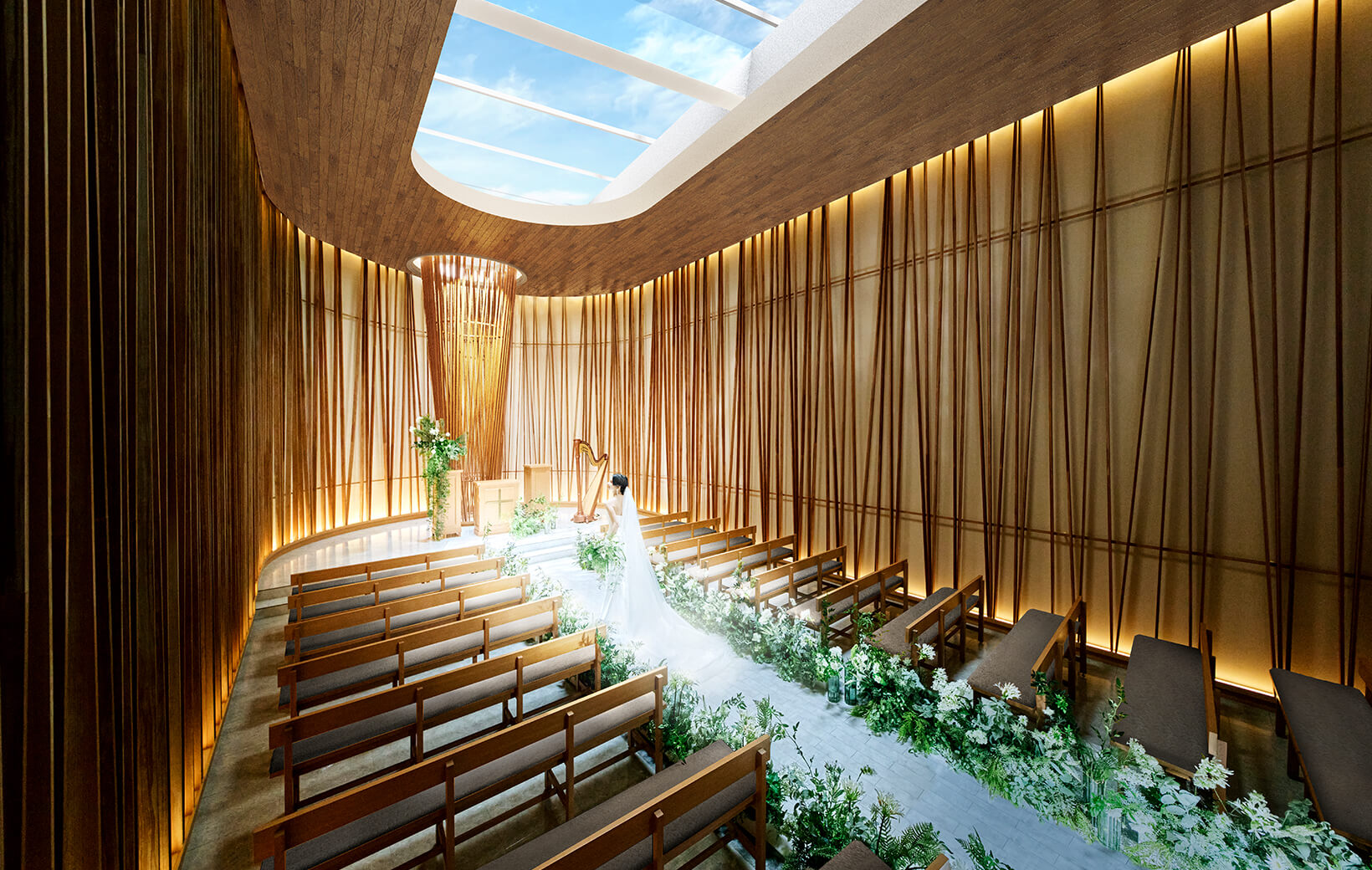 新たにリニューアルするチャペルは、木と光に囲まれた洗練されたデザイン。結婚式のために建築された迎賓館で、大切な方と心温まる時間を。上質さもアットホームさも、どちらも叶えられるチャペルです。