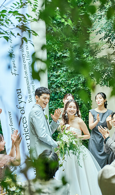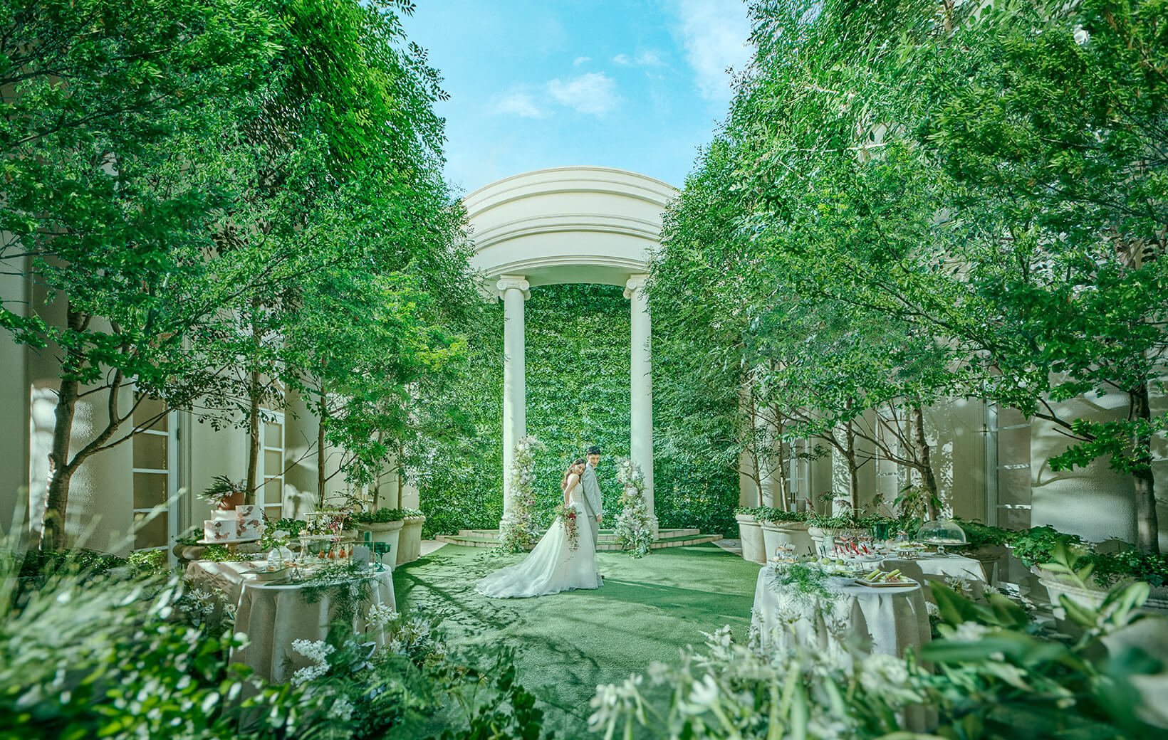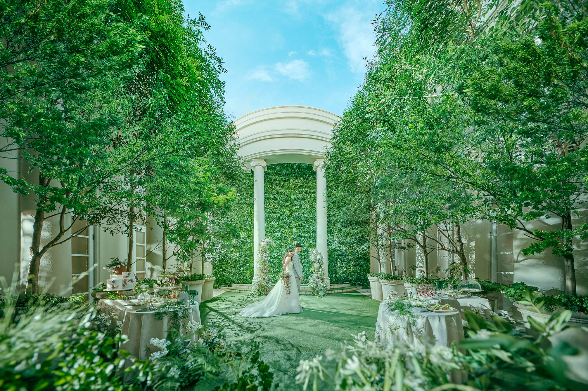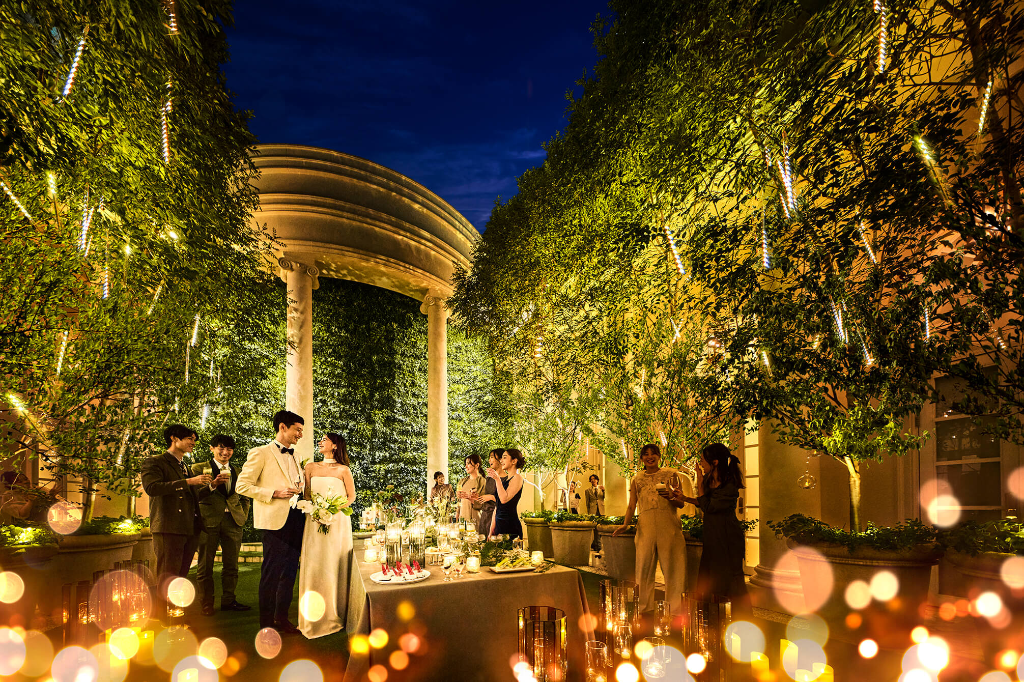 最上階に位置するプライベートガーデンは、都会の真ん中であることを忘れてしまうほど非日常的。時間も空間の使い方も自由自在なので、ふたりらしいひと時を叶えられます。フォトシューティングも、デザートビュッフェもガーデン挙式も、おふたりのご希望に合わせてご提案可能です。