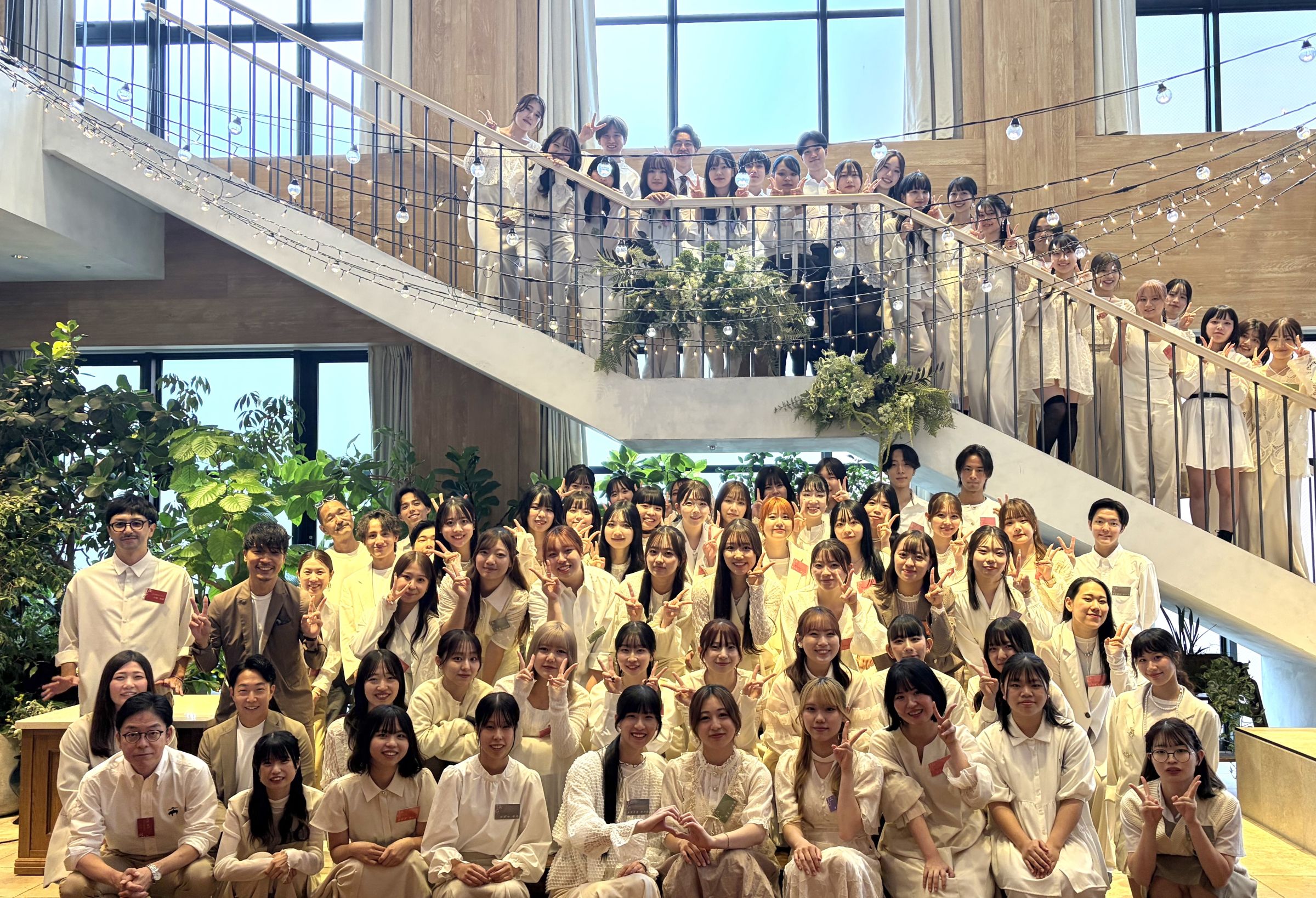 当社の内定式は、スーツで参加し、内定証書授与といった形式的な内容や流れで進んでいくものではなく、結婚式と同様に人生の節目を彩る時間になることを目指しています。今年のドレスコードは「白」で、まだ何色にも染まっていない内定者たちが、自分らしい色で未来を彩ってほしいという想いを込めました。