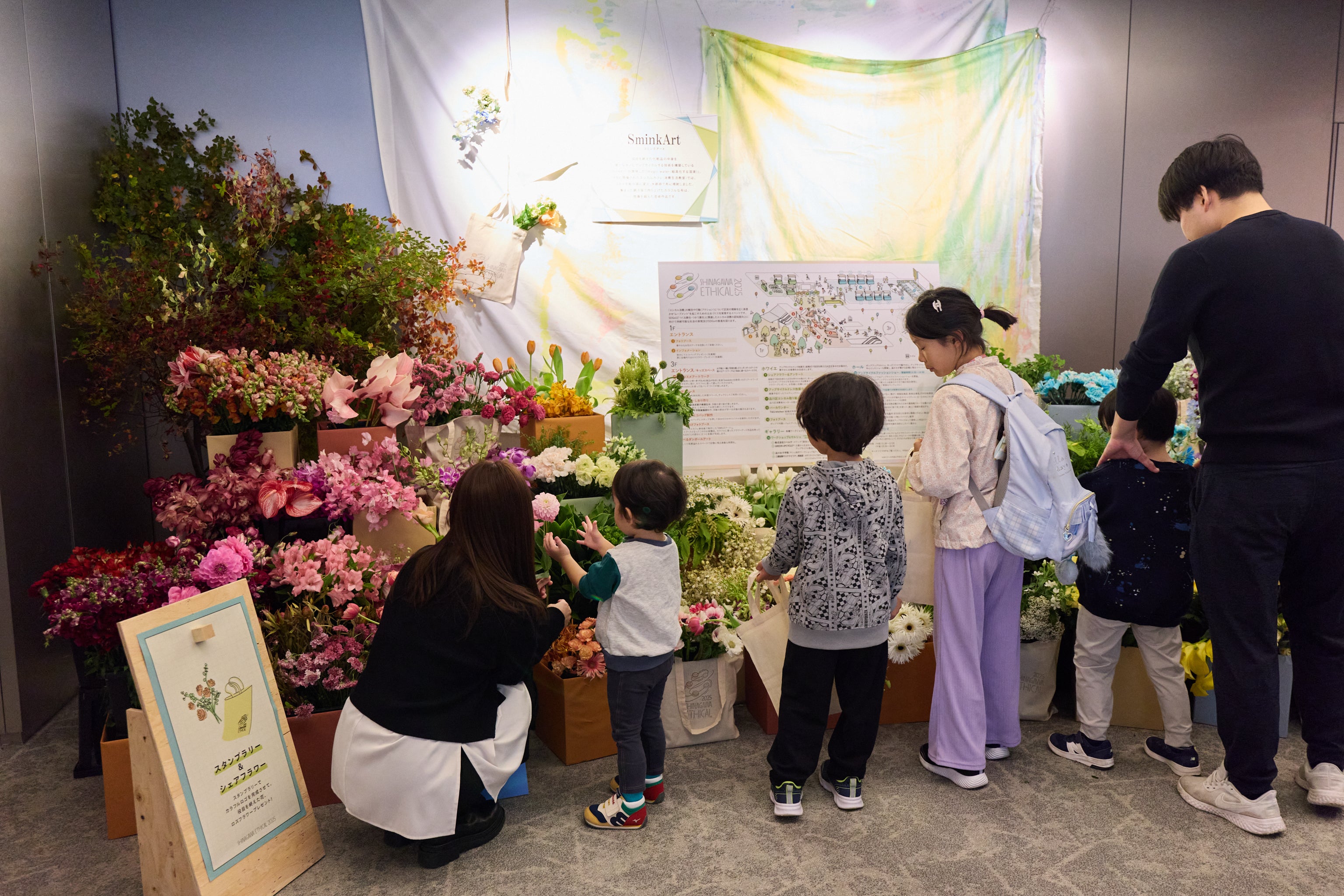 各ブースで体験をするとスタンプがもらえるスタンプラリーも実施し、全てのスタンプを集めた方にはロスフラワーを活用した“シェアフラワー”をプレゼント。