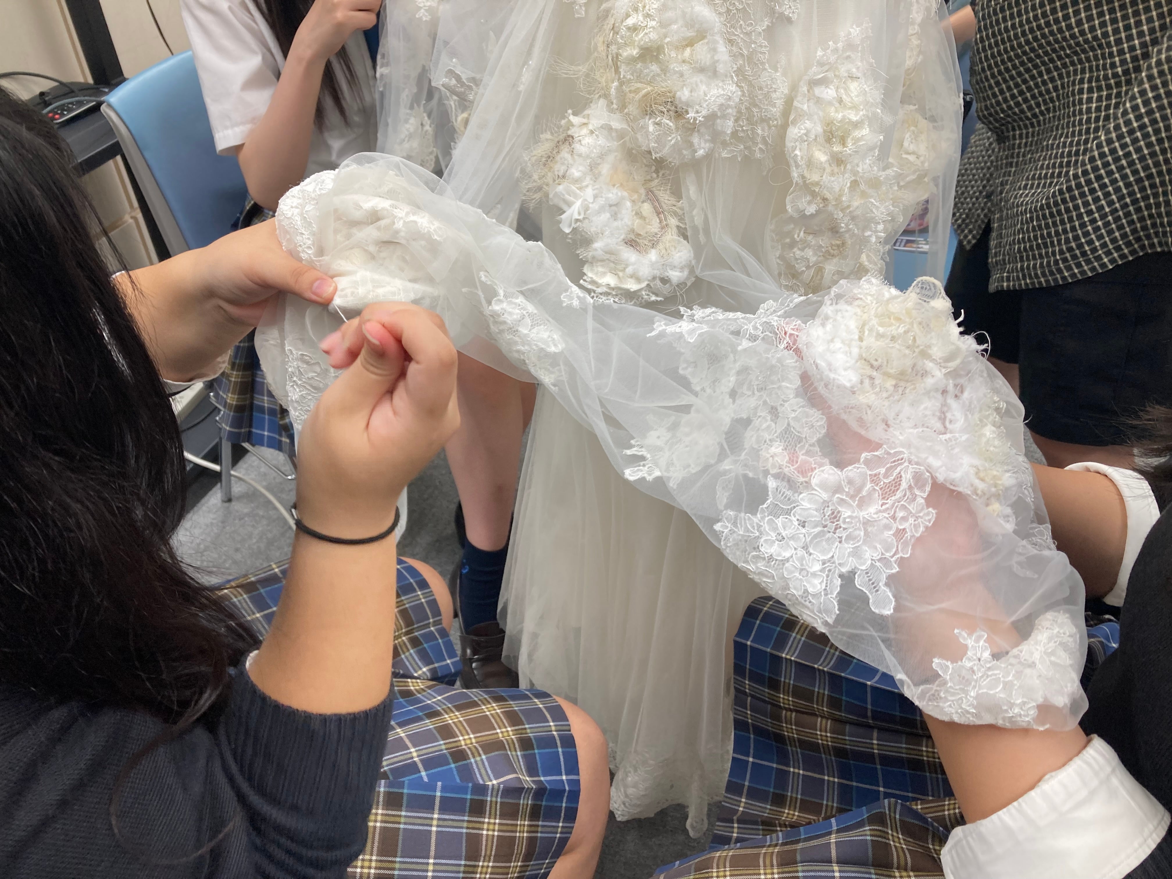 エシカル消費に関しては、当社が品川区の委託事業者として昨年開催した、エシカル消費イベント in しながわ「SHINAGAWA ETHICAL 2025」にて、地域の学校とともに学生たちがエシカル消費を学ぶ機会を創出しました。品川女子学院被服部とは、当社の廃棄ドレスをアップサイクルしたドレス型サシェの製作と販売、ファッションショーのドレス製作で連携。また青稜中学校・高等学校SDGs部には、イベントで出た廃材のうち、学校で再利用できるものの提供を行いました。