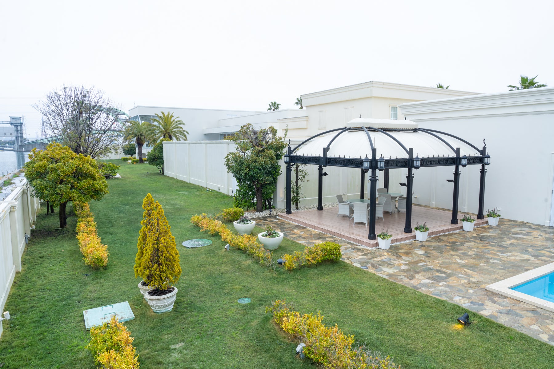 和歌山駅から車で約15分、マリーナシティ内にありサンブリッジを間近に望めます。白亜の凱旋門を抜けた先の広大な敷地には大階段が印象的な「ホワイトハウス」とプール付きのスタイリッシュな「ヴィクトリアハウス」がございます。