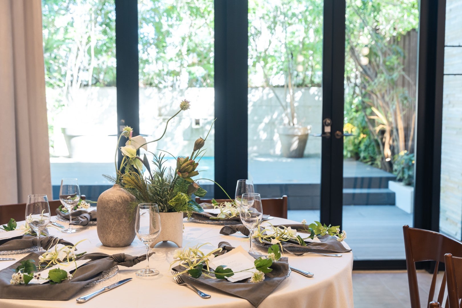 イベント、撮影、ご宴会など貸し切りでご案内しております。表参道駅徒歩5分ですが近隣が静かな会場です。自然光が降り注ぐチャペル、テラス隣接の開放感のあるバンケット、お控室も多く用意がございます。商品展示会や商談をはじめ貸切でのご案内やドラマ、雑誌の撮影も可能です。ご宴会ではスクリーンが2面あるため余興演出にも最適な会場です。