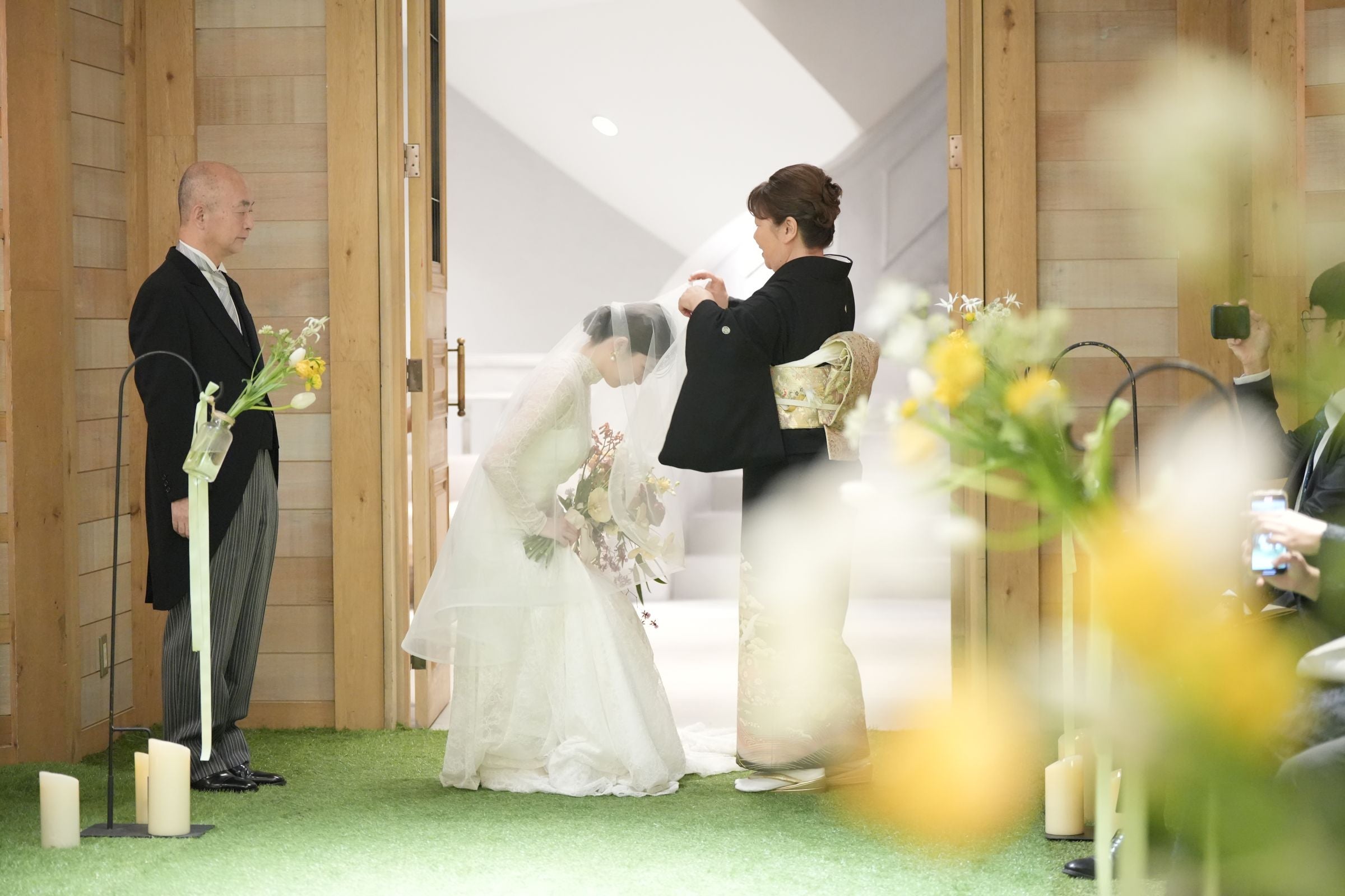 リングガールは姪っ子ちゃんにお願いをして、大好きなぬいぐるみと一緒におふたりへ結婚指輪を届けてくれました!