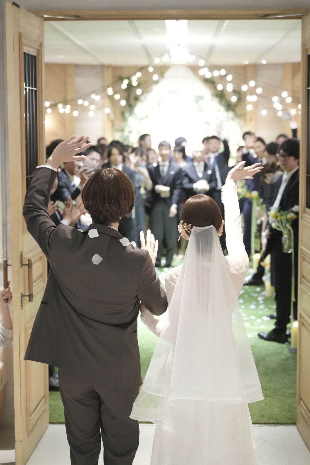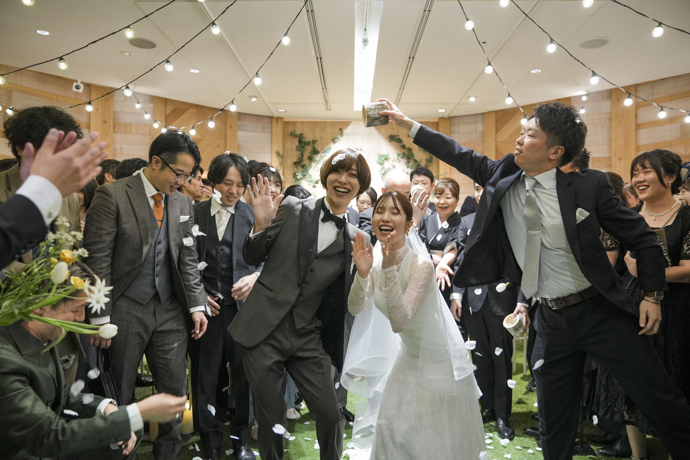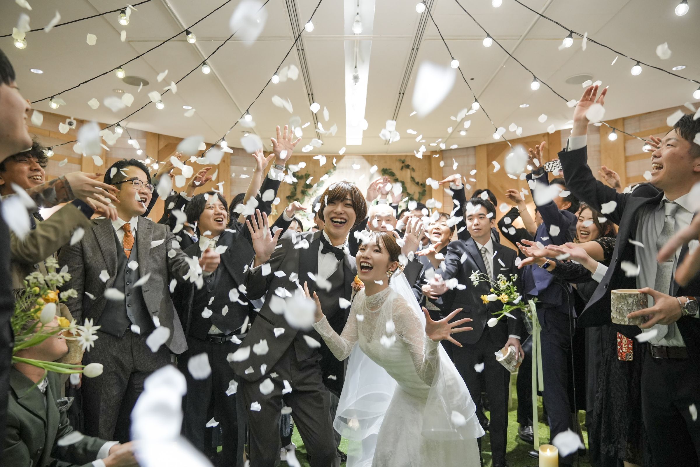 挙式の結びには、ゲストの皆様に囲まれながらフラワーシャワーの祝福を!
