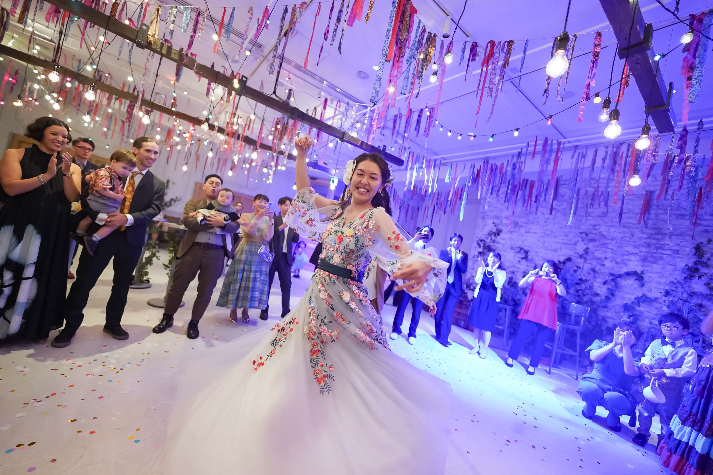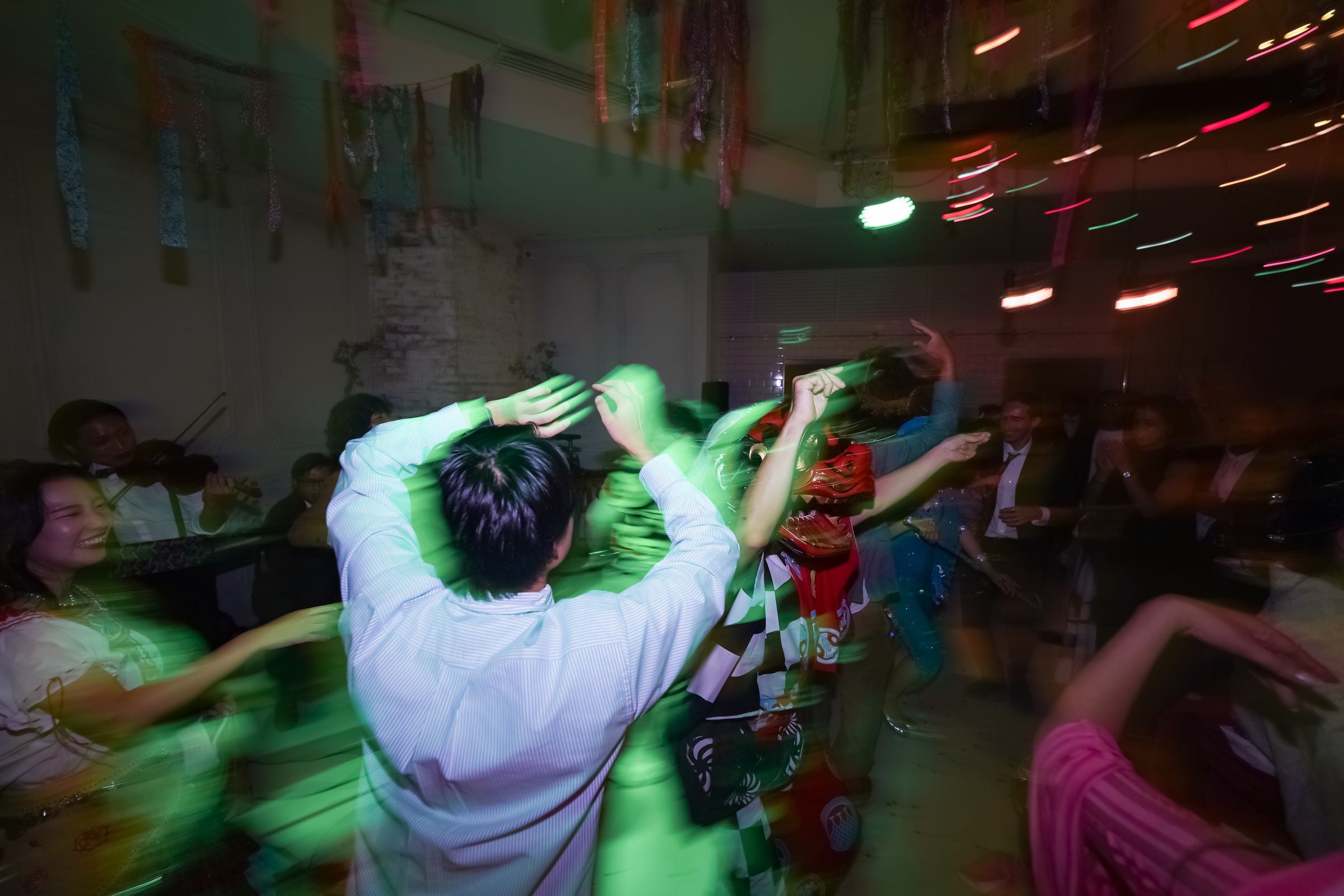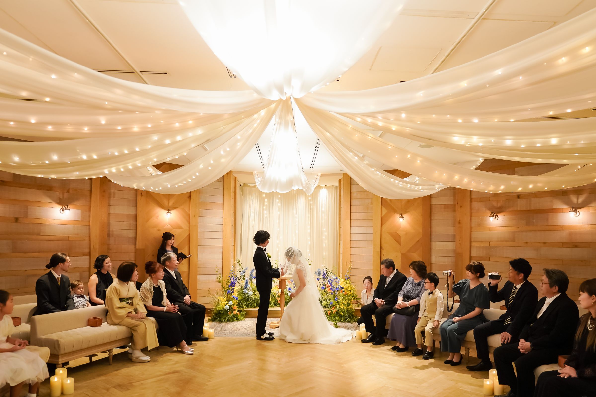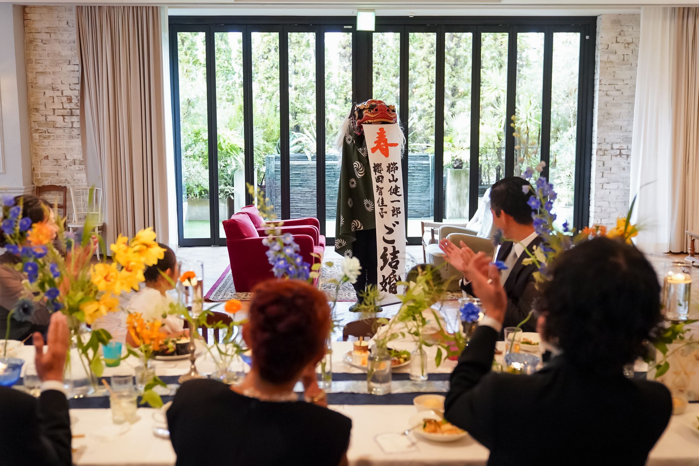 のびのび踊れるようにフロアを広く使った 立食パーティのスタイルに