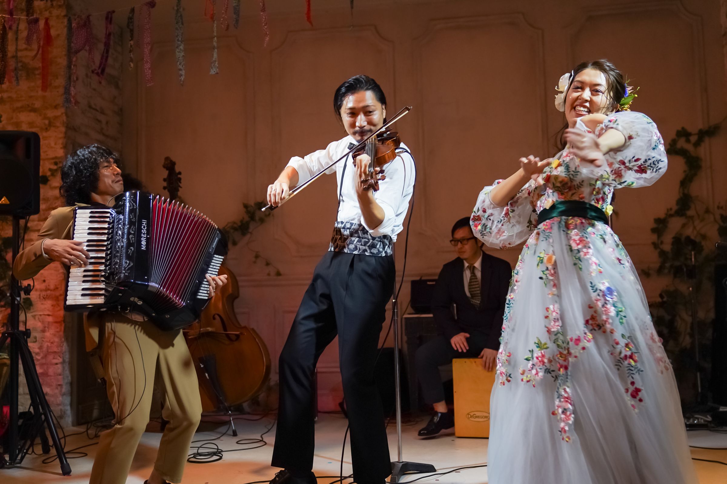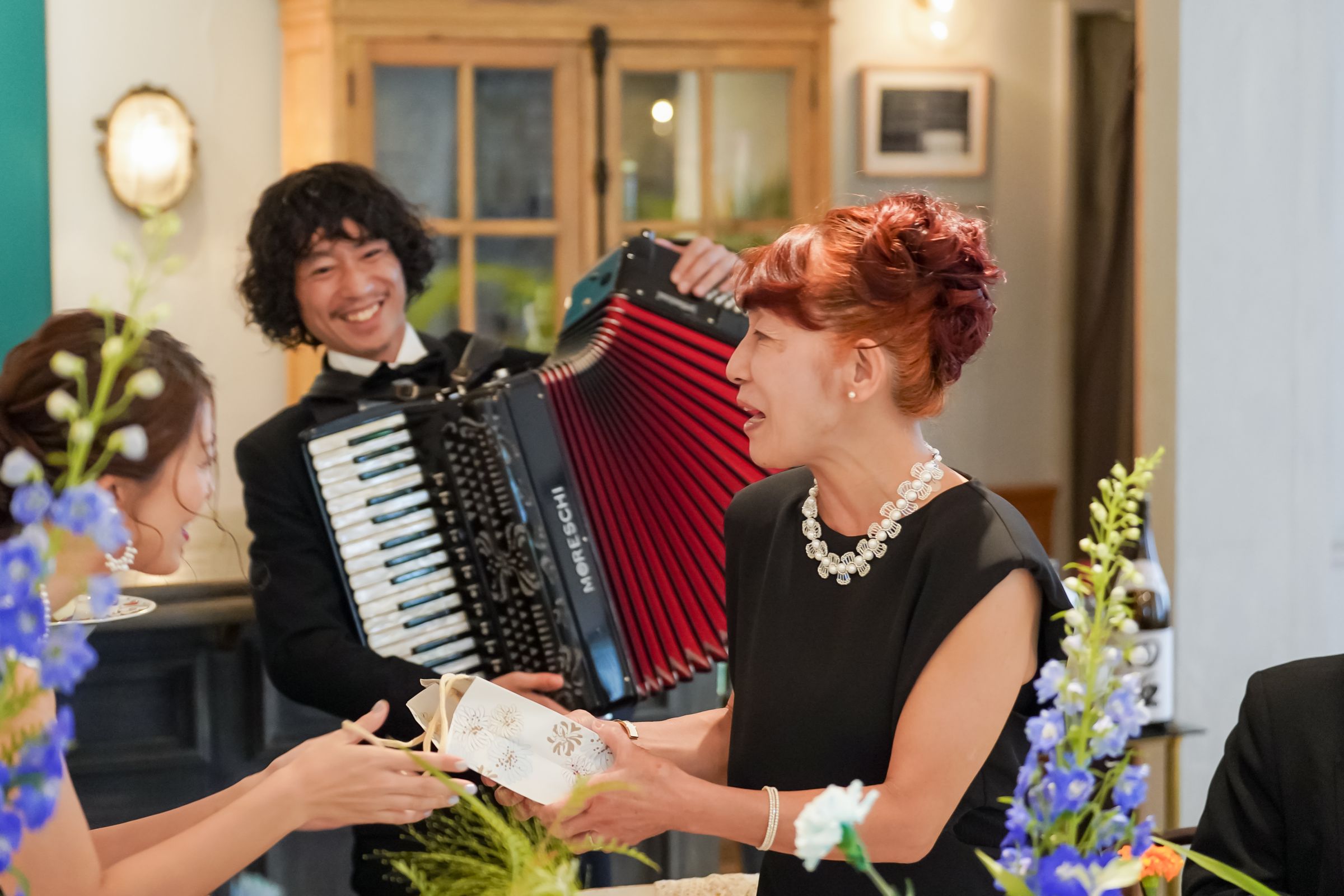 そして、お母様のバースデイをご新郎様のアコーディオンの演奏でお祝い。