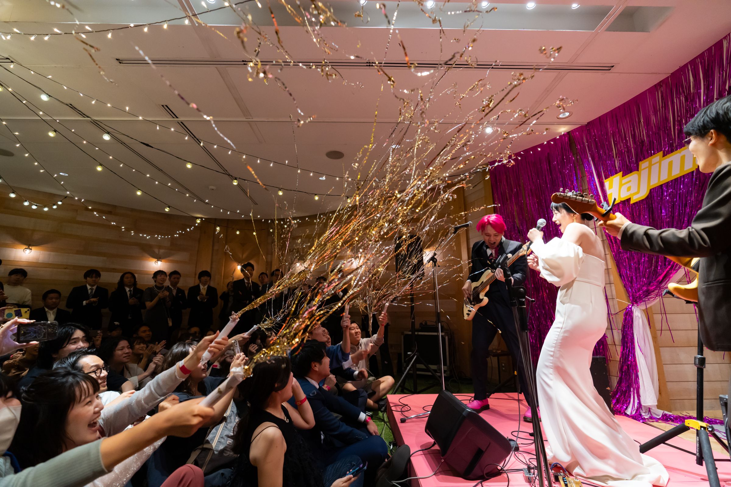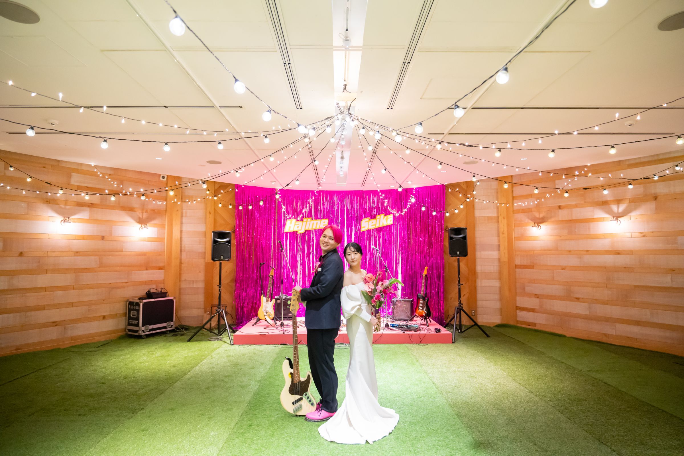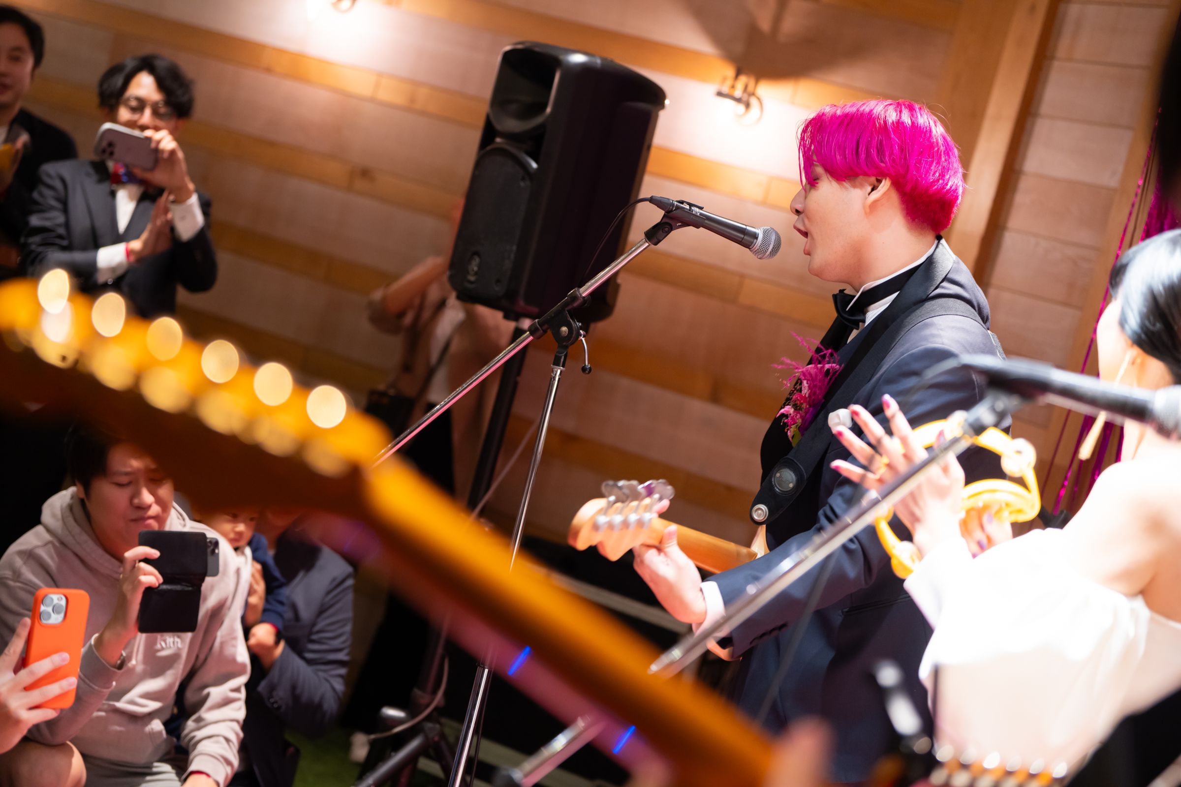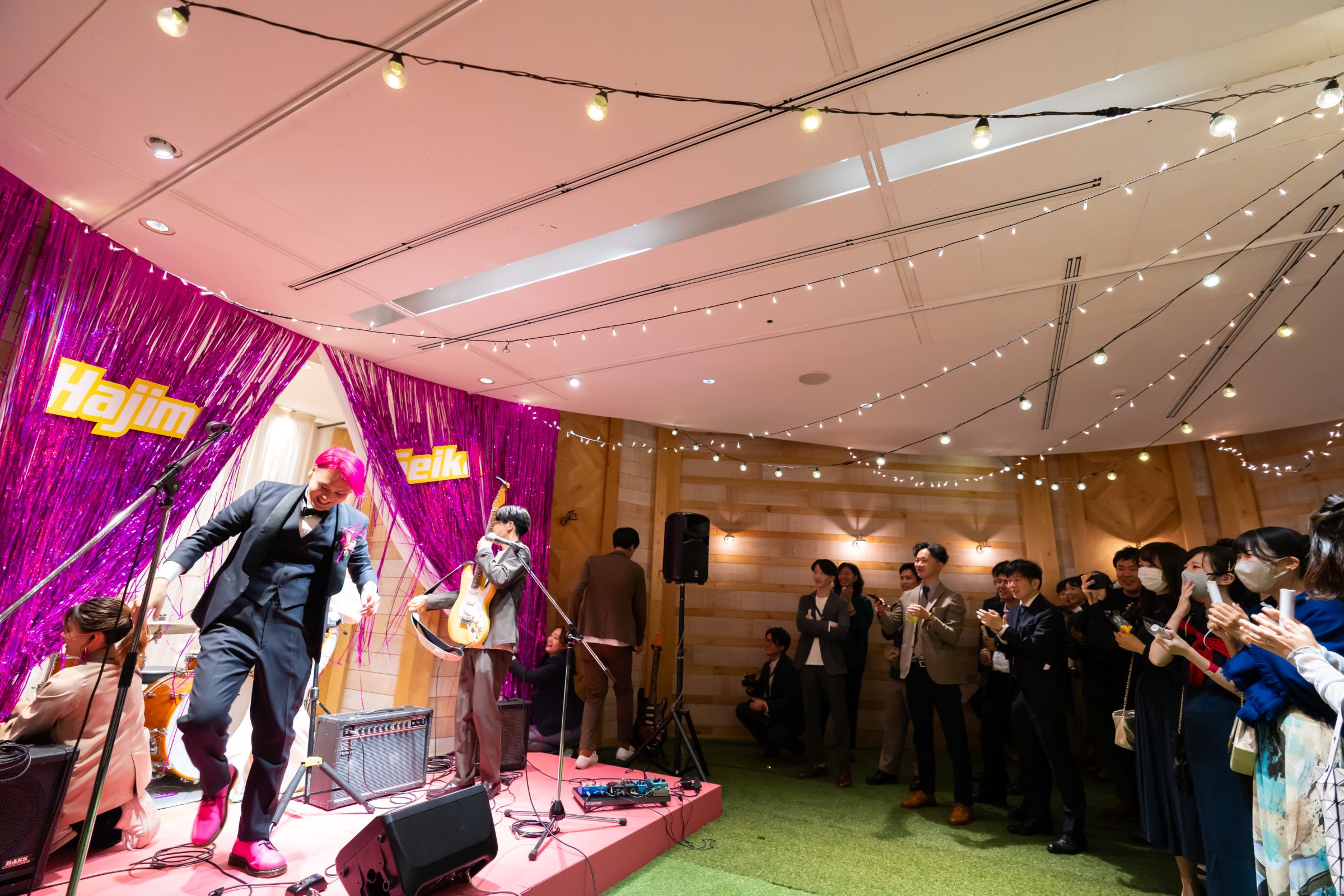 挙式ではなく、夫婦での初めてのバンド演奏をパーティ前のオープニングアクトとしてご提案させていただきました。