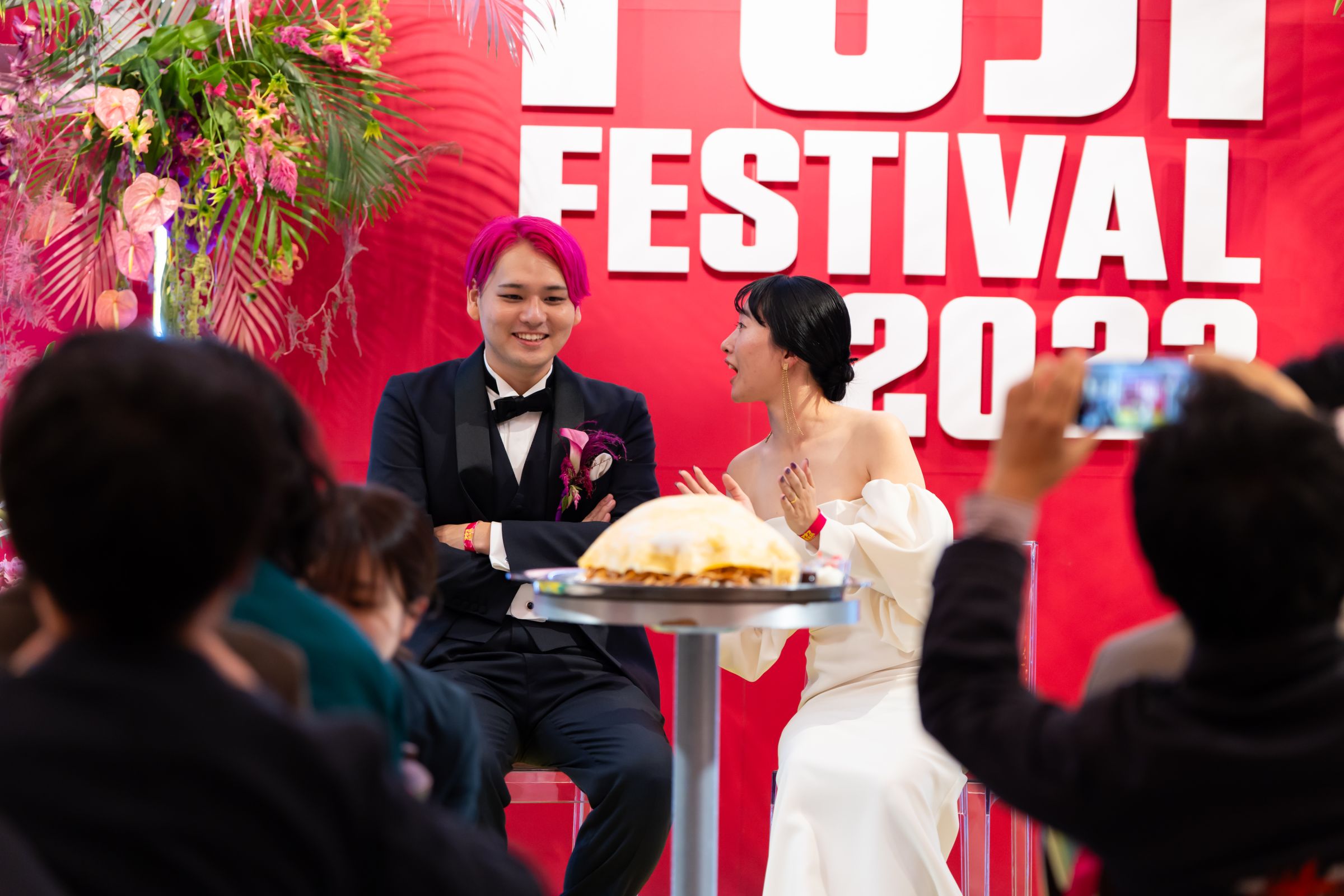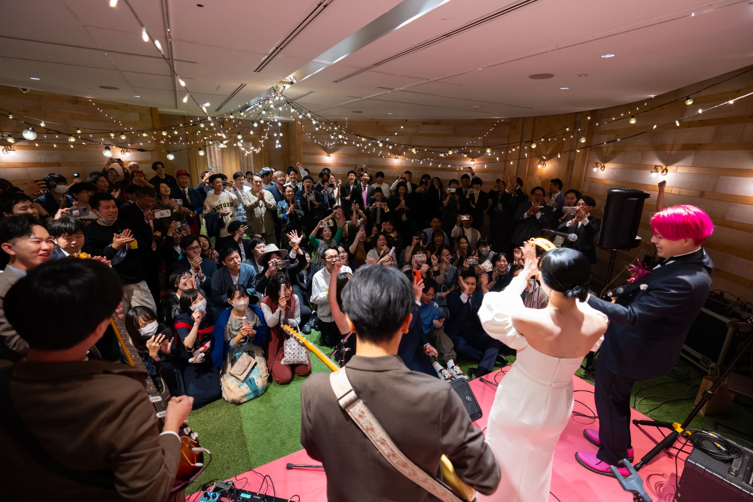 会場に響き渡る生演奏と、ゲストも一緒に盛り上げて楽しむ様子はおふたりが大好きなフェスそのもの!