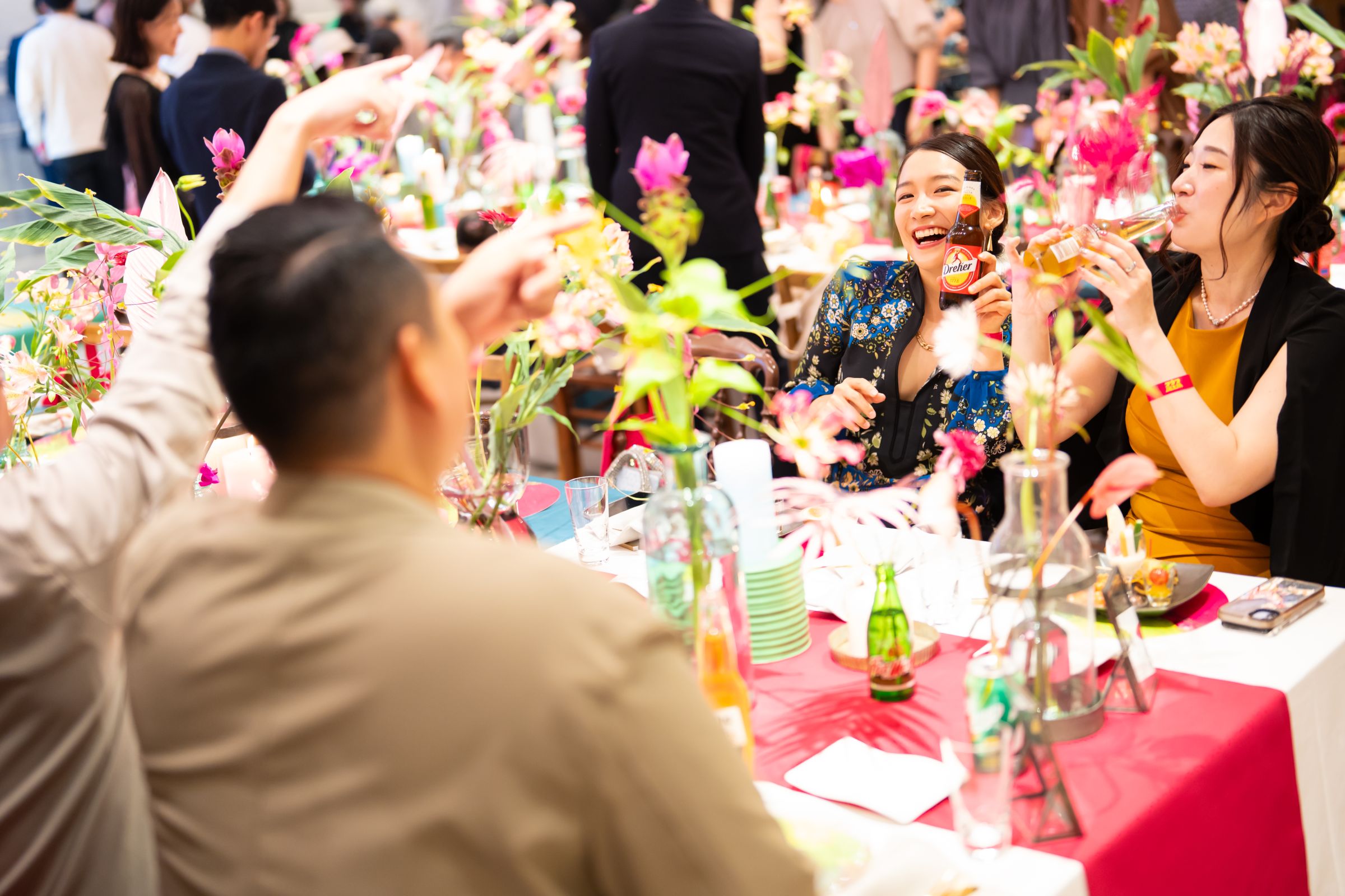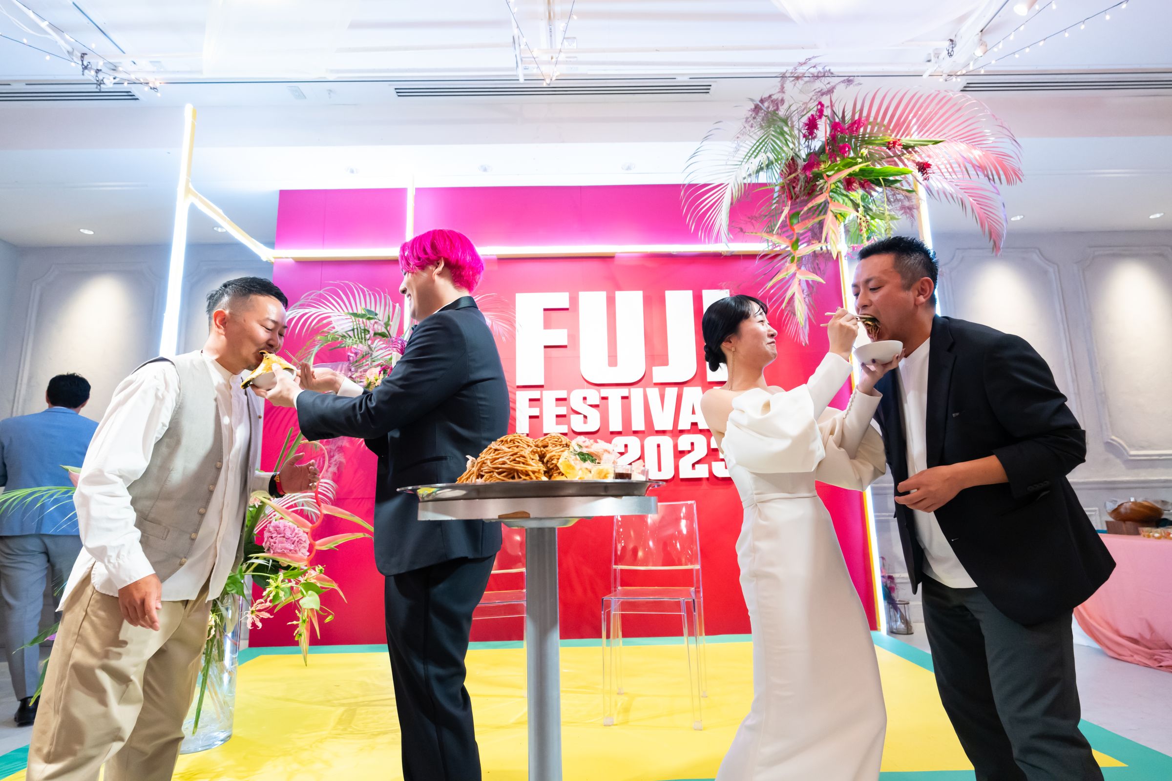 会場を彩るビビッドピンクのリストバンドを身に着けたら、ゲストも一気に「フェス気分」に!