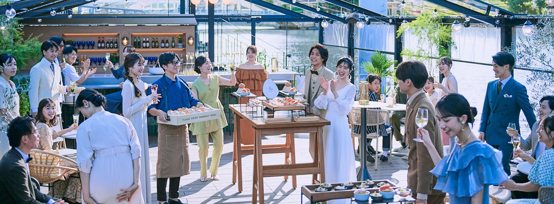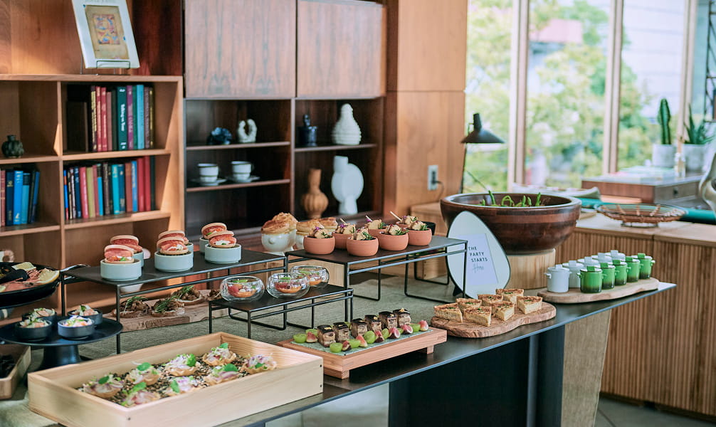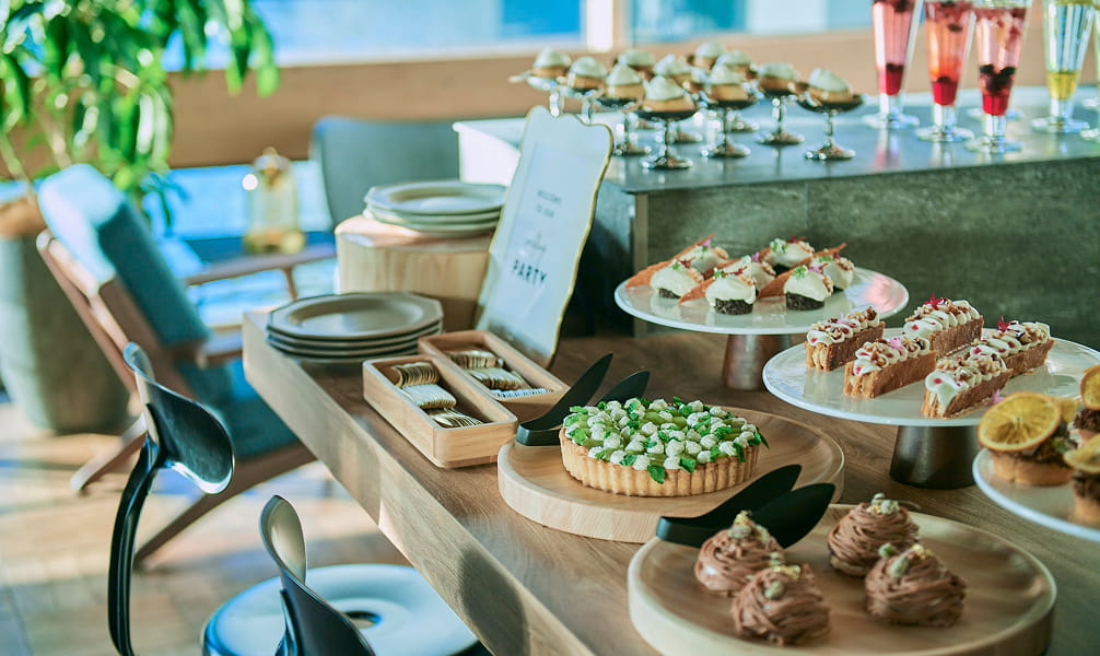 宴会場ではない空間だからこそ、華やかなお料理と充実したドリンクと居心地の良い空間でゲスト同志の会話も弾み、印象に残るパーティが叶います。