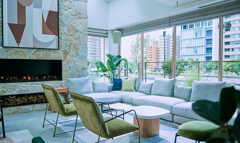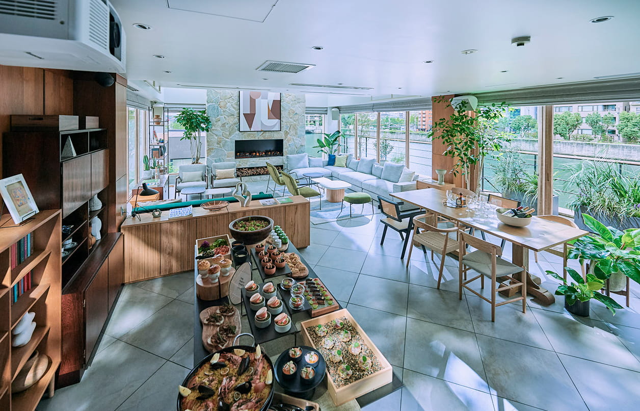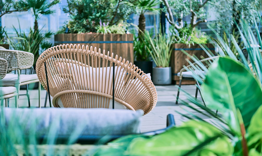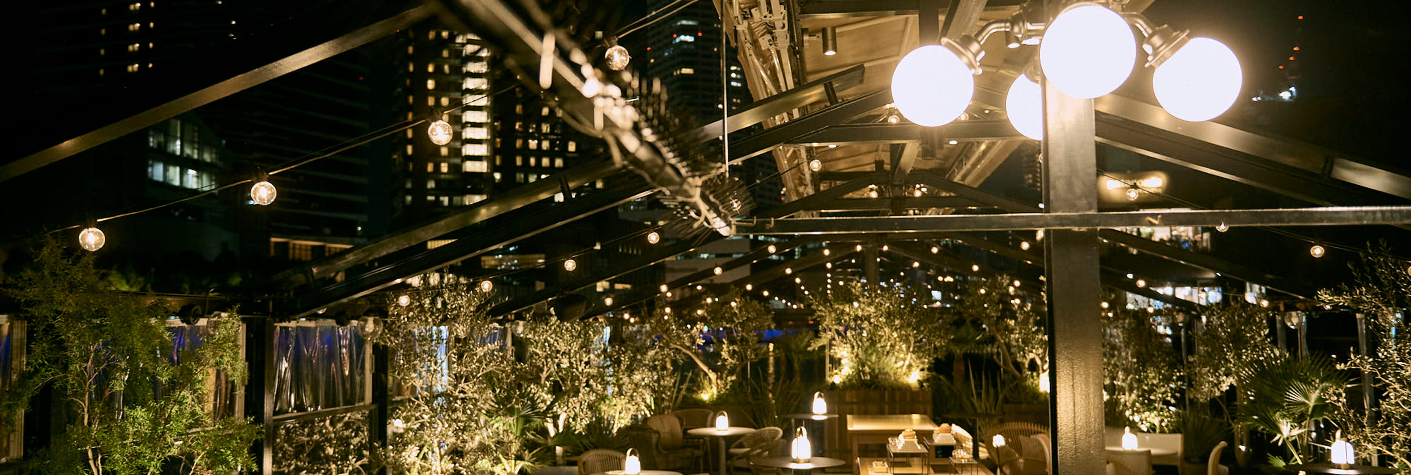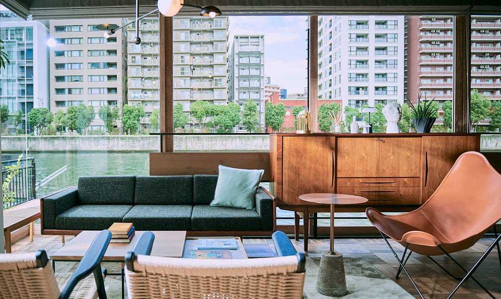 堂島川に浮かぶ都会の喧騒を忘れさせる水と緑に囲まれたテラス。