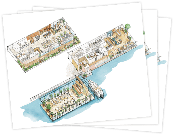 開放的な水上テラスで過ごす時間は他にはない心地よい体験になります。